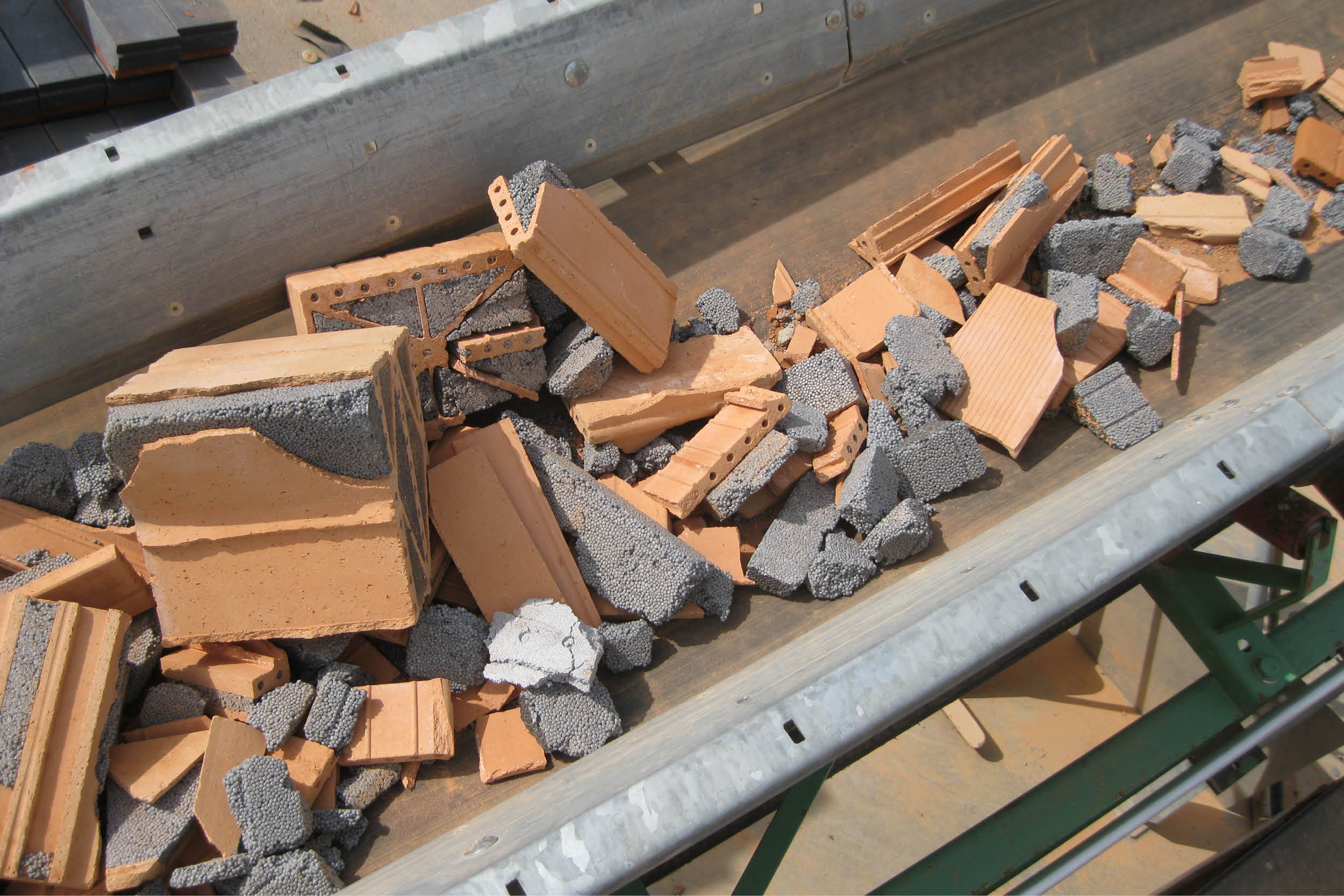 In jüngster Zeit beschäftigt sich das Unternehmen verstärkt mit der Rücknahme, Trennung und Wiederverwertung der hergestellten Baustoffe. Im Zuge der Werksführung informierte Michael Kellerer über die eigens entwickelte Pilotanlage, die den eingeschäumten Dämmstoff der AdPor®-gefüllten Ziegel sortenrein vom Ziegel trennt.
