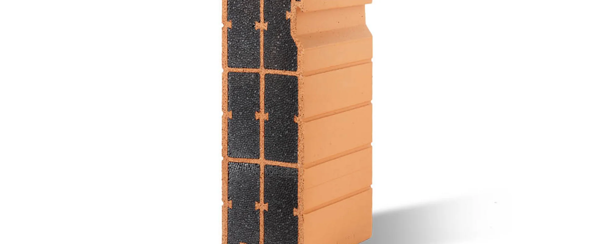 Ziegel von ZMK, wie der ZMK8, verfügen über eine patentierte wärmebrückenfreie Stoßfugenverzahnung. Wie ein Reißverschluss fügen sich die Mauersteine ineinander und vermeiden Wärmebrücken. Dies und die durchdachte Lochstruktur der Ziegel sorgen für die gute Dämmung der Außenhülle.